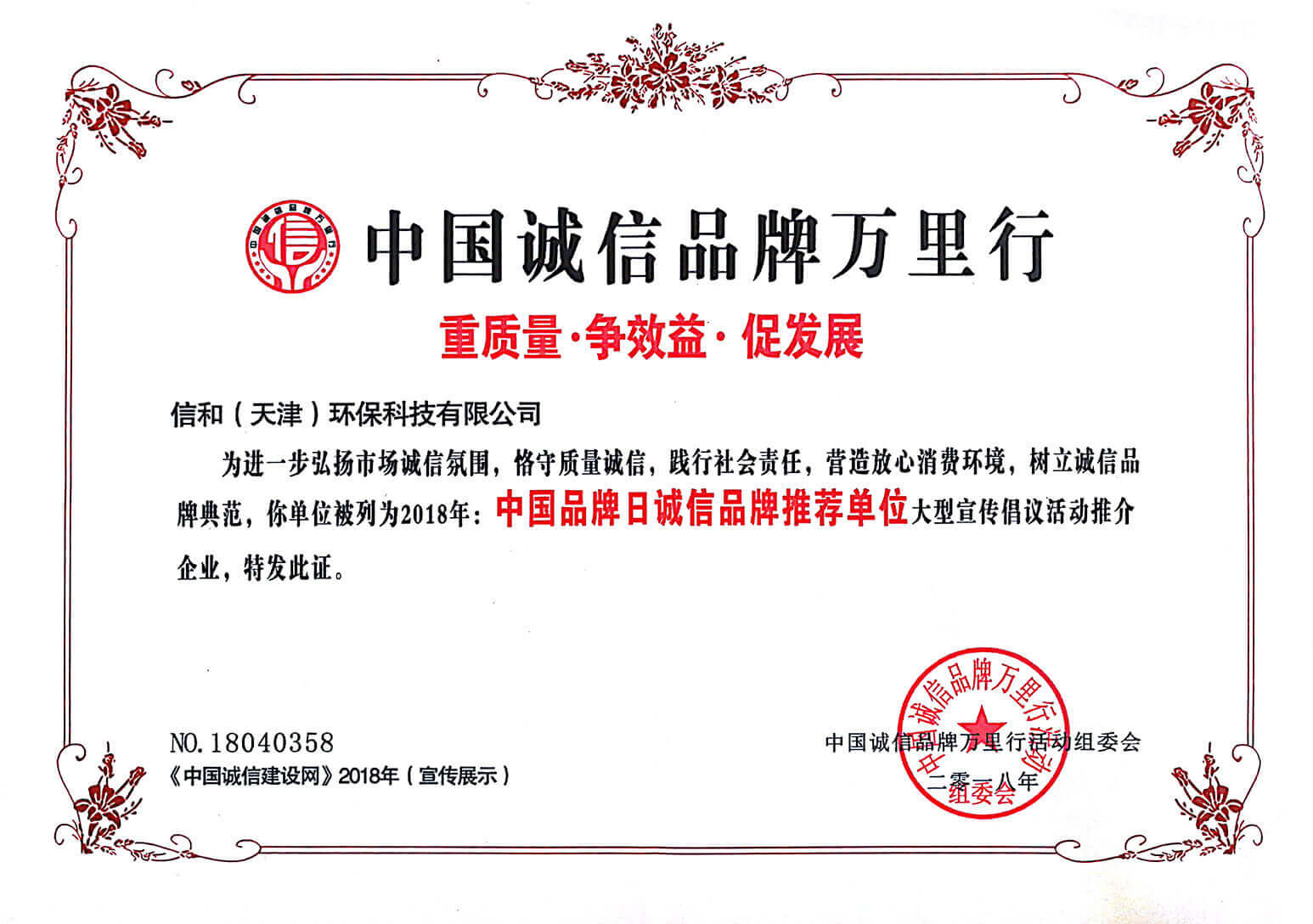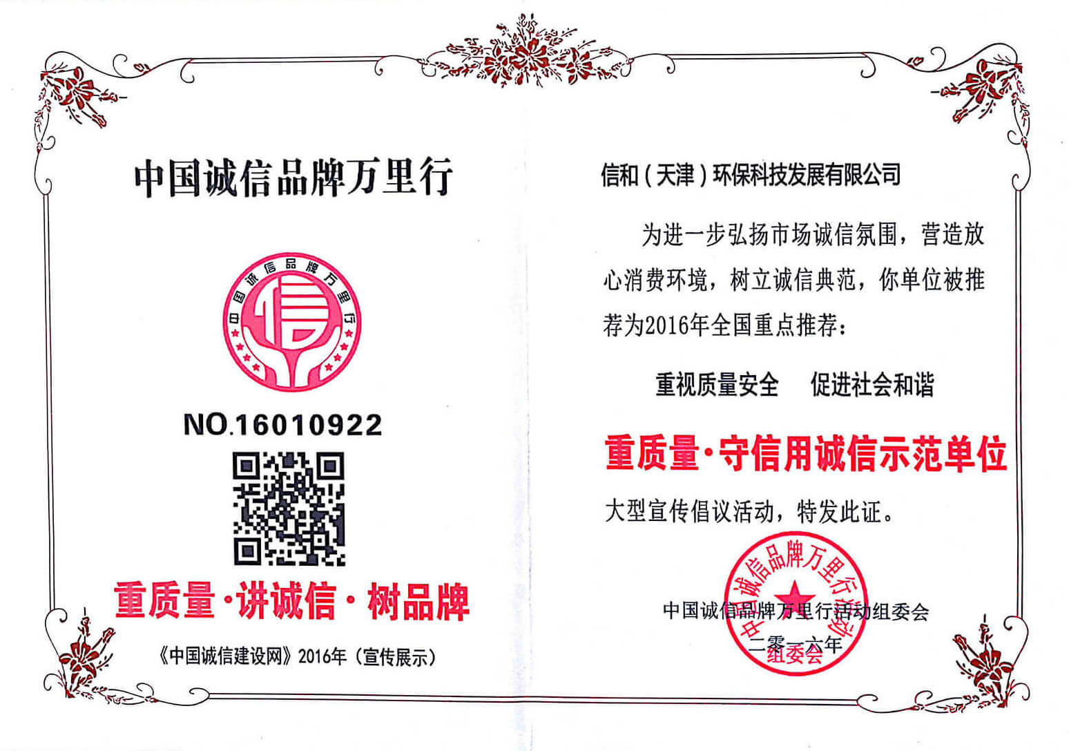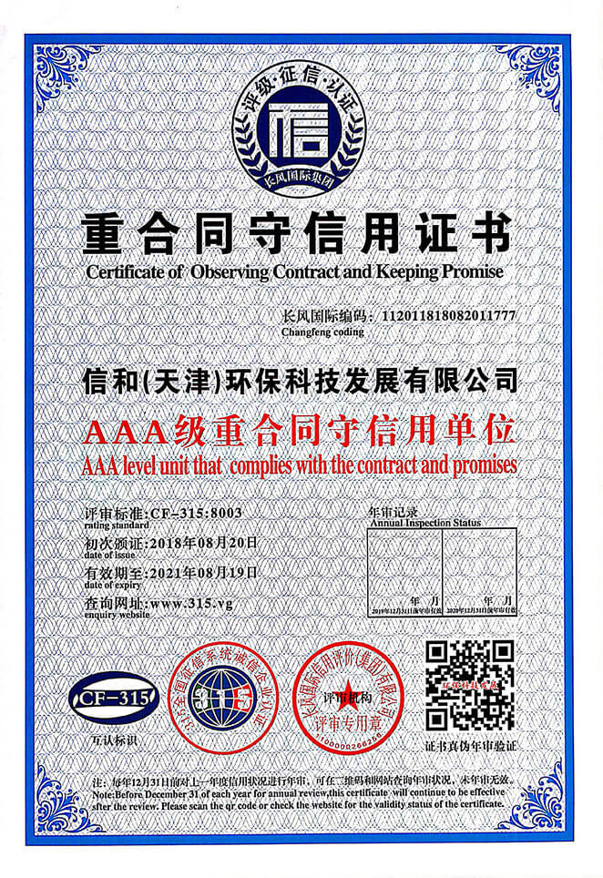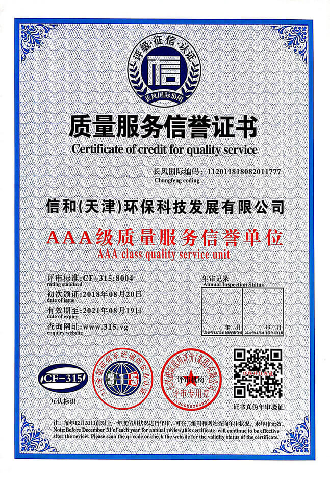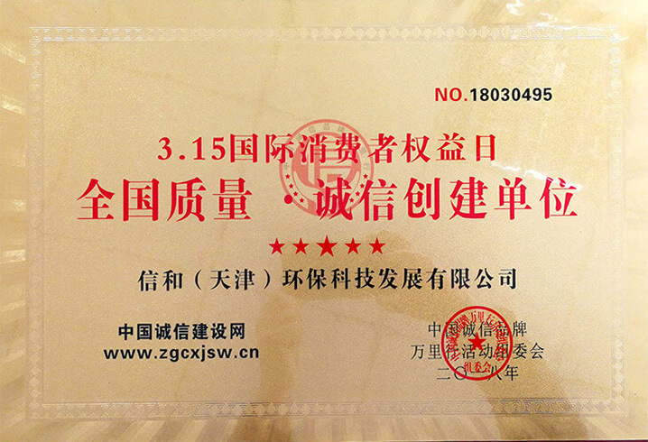 “質(zhì)量就是生命”。信和重質(zhì)量、守信用,被中國誠信品牌萬里行推薦“誠信示范單位”、“AAA資信等級(jí)”、“AAA級(jí)誠信經(jīng)營示范單位”、“誠信經(jīng)理人榮譽(yù)證書”、“誠信企業(yè)家榮譽(yù)證書”、“中國產(chǎn)品質(zhì)量放心達(dá)標(biāo)企業(yè)”、“誠信品牌聯(lián)盟會(huì)員單位”、“中國質(zhì)量誠信AAA級(jí)品牌企業(yè)”、“中國百強(qiáng)優(yōu)秀企業(yè)”、“節(jié)能環(huán)保推廣產(chǎn)品”、“全國科技創(chuàng)新企業(yè)”等榮譽(yù)稱號(hào)。